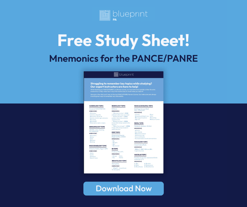 Struggling to remember key topics during your PANCE prep? Download our FREE study sheet with mnemonics that our PA instructors use during our Live PANCE Review Course!
