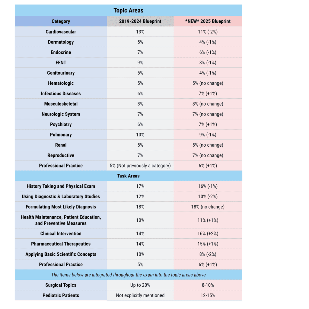 If you didn’t already know changes have been made to the PANCE blueprint, there’s no need to panic! You still have plenty of time. Beginning in January 2025, a new NCCPA content blueprint for the PANCE exam will go into effect. Here’s an overview of the changes, why these changes were made, and how to incorporate the new PANCE blueprint into your study plan.