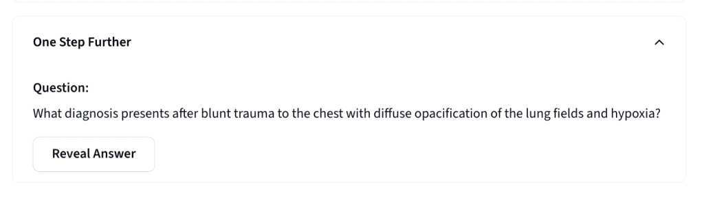 Additionally, when in Review Mode, the Qbank includes “One Step Further” questions which are designed to deepen your understanding and assess the depth of your knowledge. These questions, combined with detailed teaching images, enhance your learning experience and help solidify your grasp on complex concepts.